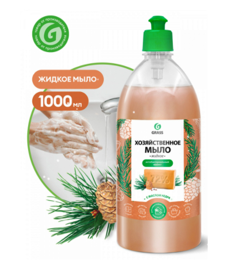 Мыло жидкое хозяйственное с маслом кедра Grass, 1 л