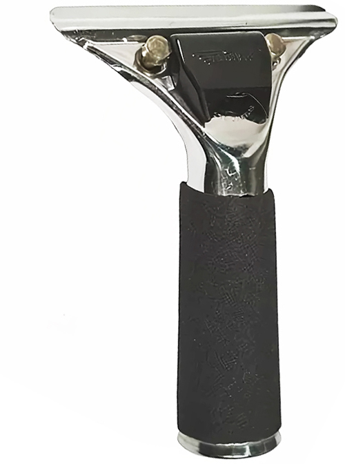 Инструмент выпускается из нержавеющей стали, что обеспечивает ему максимальную конструктивную надежность и долговечность. Держатель стяжки имеет замок, плотно и прочно фиксирующий желоб, а также удобную прорезиненную ручку. По своим размерам рукоятка универсальна — ее можно использовать в комплекте со всеми желобами марки Ettore, а также с любой моделью телескопического шеста этого бренда в случае, если речь идет о мойке высоких витрин, окон и т. д.