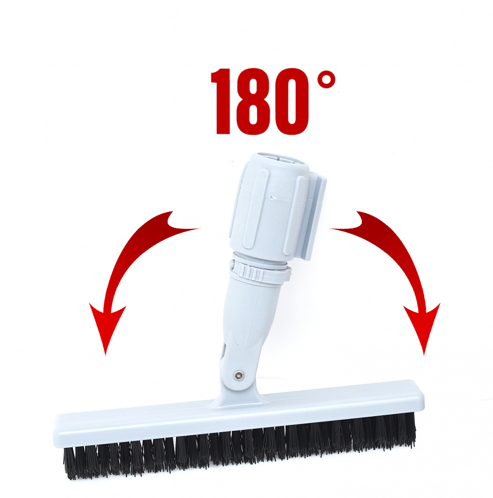 Шарнирный узел позволяет работать щеткой не только под прямым углом перед собой, но и в стороны, так как подвижность шарнира составляет 180 градусов.